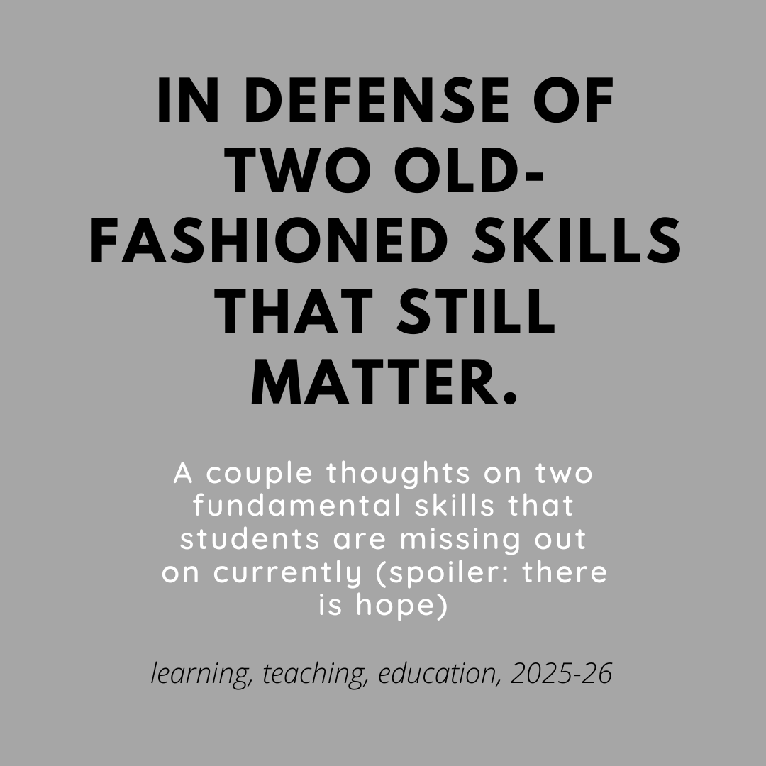 There’s just more of it, and it means wisdom has decreased, people are overwhelmed and oversaturated, and there is less and less baseline information in the form of “knowledge” that people agree on. Going through the steps of learning a fundamental skill, even if there’s something (possibly) better off on the horizon, is not going to be to any child’s detriment.